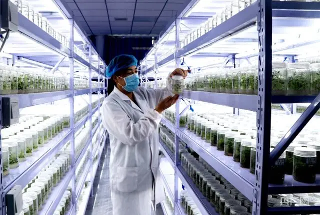 初冬时节,在民勤县发泽种业有限公司的温室大棚内,人参果苗枝叶舒展、郁郁葱葱。工作人员刘雪琴在智能控制系统台前轻点几下,设备就挨个运转起来,放风、浇水、施肥,按步骤推进。“去外面打工要么活太重太累,要么工资太低,没想到回到老本行当农民,却成了‘香饽饽’。” 刘雪琴这位有着20多年种棚经验的“老把式”,现在是发泽种业有限公司育苗温棚的“大管家”,兼顾着四个温棚的智能雾化、水肥一体等管理工作。