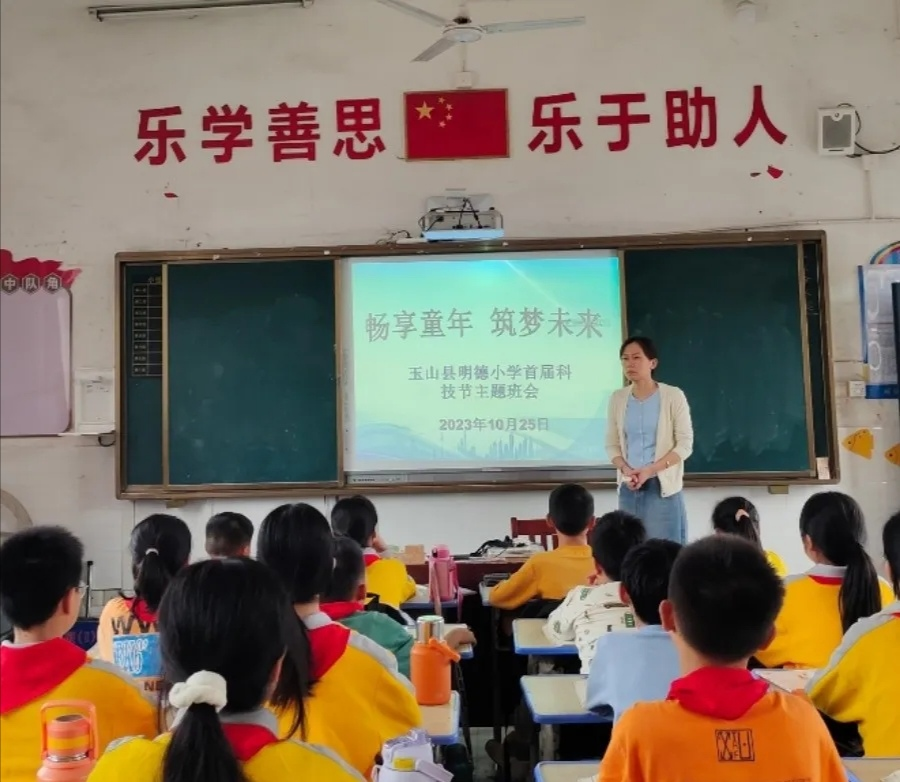 科学启迪智慧,科技创造未来。为了丰富校园文化生活,充分挖掘学生内在潜力,培养学生创新精神和实践能力,提高学生的科学素养,夯实“减负提质”内涵,江西省玉山县明德小学在10月到11月期间,举办“畅享童年 筑梦未来”为主题的校园科技节活动。