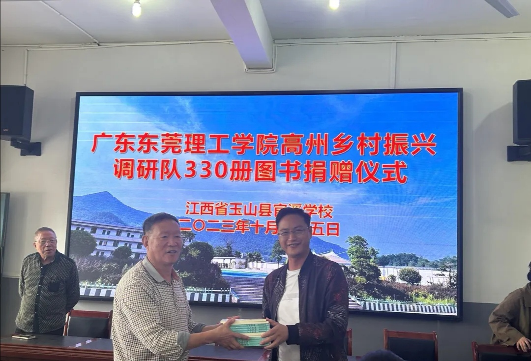 10月25日上午,江西省玉山县官溪学校举行了广东东莞理工学院高州乡村振兴调研队330册图书捐赠仪式。