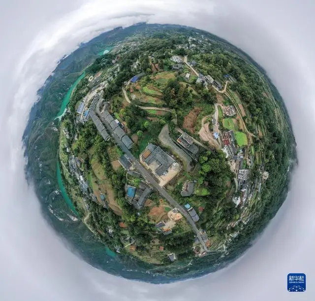 这是11月15日拍摄的贵州省石阡县国荣乡楼上古寨风光(无人机全景照片)。