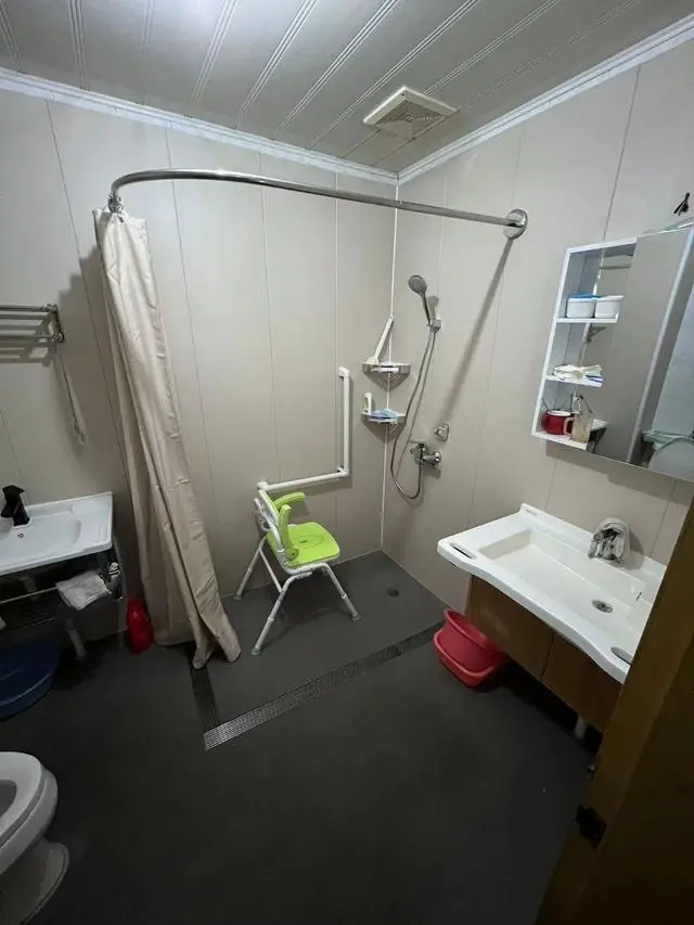徐老先生家的厨房橱柜更换了,使厨房焕然一新。不仅拿物品更方便更安全,环境还更加明亮温馨。在卫生间方面,服务商进行了墙面、地面的翻新,更换了马桶、淋浴龙头等洁具。淋浴房安装了一字扶手等适老化产品,方便老人做支撑辅助,还使用专用地膜,起到了更好的防滑、恒温的作用。这些改造不仅使老人的生活更加舒适便利,也体现了服务办对老年人的关爱和尊重。