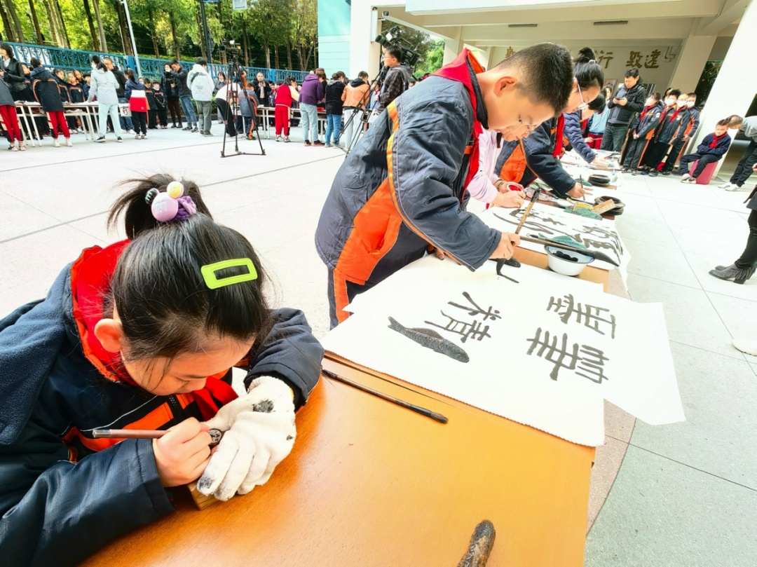 暗香萦袖,落笔挥毫,师生携手,笔墨生辉。11月13日,上海市黄浦区重庆北路小学“浓墨重彩方寸间”2023年书画节暨校本课程用书《笔情印意》首发式举行。