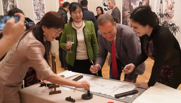 在欢迎晚宴上,意大利著名艺术家Mr.Harald Kastlunger也分享了他的感受。他对中国书画艺术所呈现出的艺术美感到震撼,认为中国的艺术具有神奇之处。他希望能够有机会到中国举办一次展览,与更多的中国艺术家进行交流。