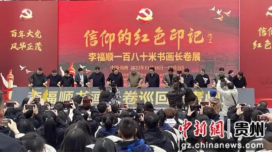 由贵州省文联和海南省文联共同主办的“信仰的红色印记——李福顺一百八十米书画长卷展”在贵州省图书馆开幕。贵州省委常委、省委宣传部部长卢雍政出席并宣布画展开幕。