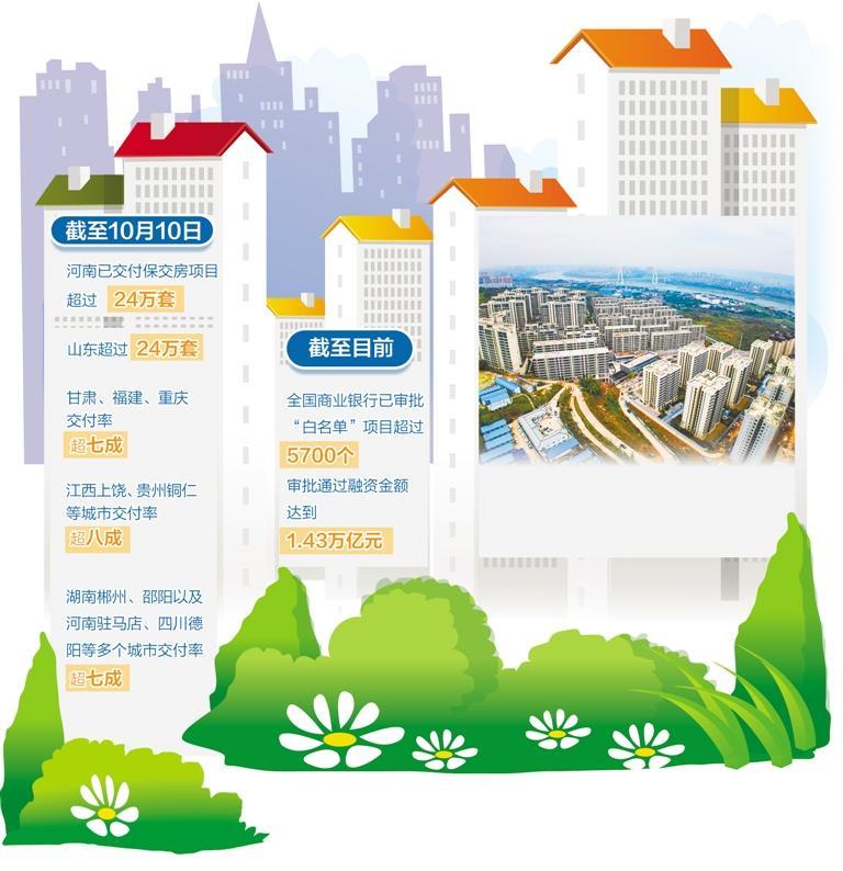 赣州市的成果,是全国推进保交房工作的一个缩影。今年5月以来,随着一系列稳市场政策措施出台,各地因城施策,保交房工作有序推进,取得显著成果。截至10月10日,河南、山东各已交付保交房项目超过24万套,甘肃、福建、重庆交付率超七成,江西上饶、贵州铜仁等城市交付率超八成,湖南郴州、邵阳以及河南驻马店、四川德阳等多个城市交付率超七成。