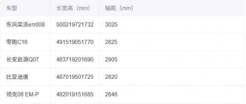 家庭出游的核心在于“全员舒适”,空间表现直接影响乘坐体验。在这方面,东风奕派eπ008 凭借 超5米车长(5002mm) 与 超3米轴距(3025mm) 脱颖而出,数据全面领先其他四款车型。作为对比中唯一车长超5米、轴距超3米的车型,其更高级别的尺寸带来了更充裕的纵向空间,确保每位乘客都能舒展自如。