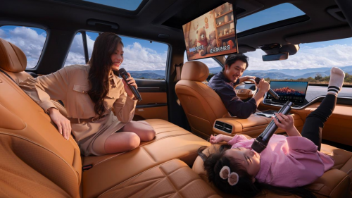座椅布局与设计同样关乎舒适性。 东风奕派eπ008灵活提供六座版和五座版 。其六座版(2+2+2布局)第二排独立座椅支持电动调节、加热/通风,第三排拥有同级罕见的宽敞空间(靠背至前排椅背距离700毫米),成年人也能舒适乘坐。五座版则展现空间魔法:后排腿托升起可形成1.5米长横向单人床;副驾放平配合后排左侧腿托可形成超2米L型贵妃榻;后排座椅放倒更可实现同级唯一的2.4米超大双人床,秒变露营房车。