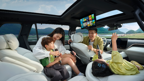 在舒适性上,eπ008堪称“倾其所有”。以奕版车型为例,直接将“冰箱彩电大沙发”三件套纳入标配:支持5℃制冷、50℃制热的智能冰箱,夏日冰饮、宝宝热食一手包办,6座版冰箱更支持二/三排电动滑移,取物便捷随心;15.6英寸后排娱乐屏搭配20扬WANOS全景声音响,瞬间将后排升级为沉浸式移动影院。无论是5座版的魔毯座椅还是6座版的零重力座椅,配合遮阳帘、香氛系统,每个座位都享有VIP级的尊崇。尤为值得一提的是,其前后排空调的制冷制热效率极高,响应迅速,无论严寒酷暑,都能在极短时间内为全车乘员营造出舒适宜人的温度环境。