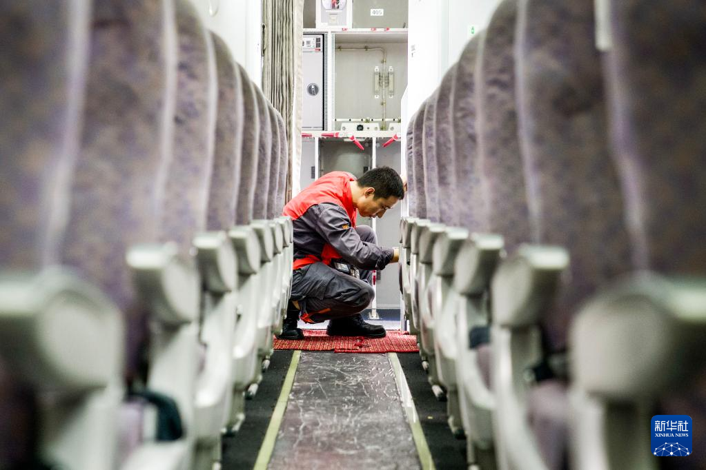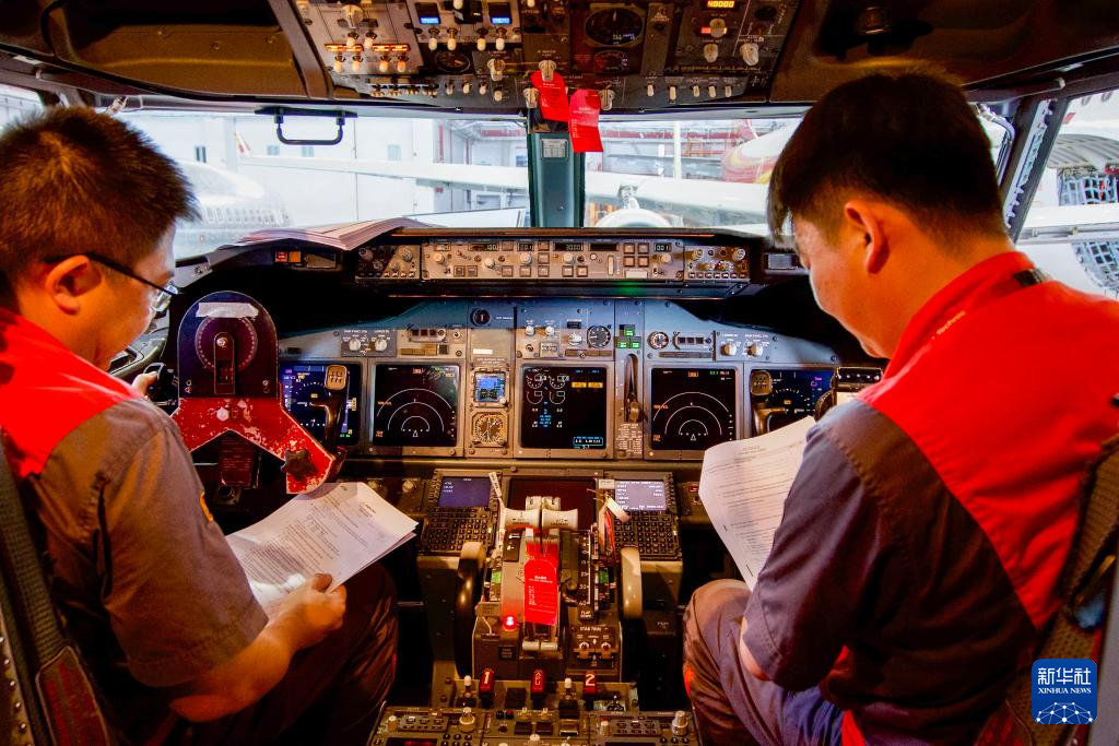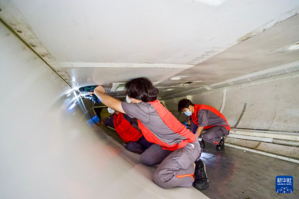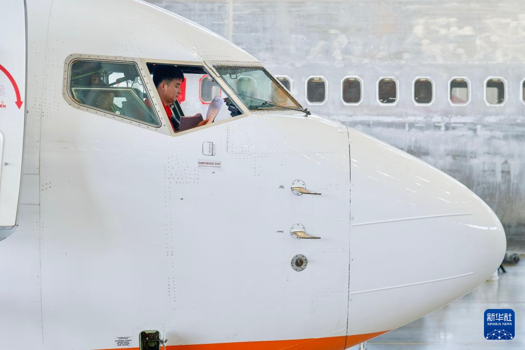 5月13日,海航技术旗下大新华飞机维修服务有限公司的机务维修人员在对进境飞机进行检修。