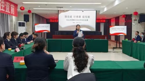 为深入贯彻省行年会精神,激发全员以学促干、以赛提能的奋进热情,3月5日晚,江西玉山农商银行举办“强党建 行普惠 促发展”知识竞赛。本次活动将党建知识、年会精神、合规文化和金融普惠知识纳入问答题库,来自全行6支队伍展开激烈角逐,掀起了一场“奋进春天里”的热潮。  ...