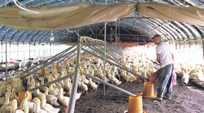 廖川平也是一名肉鸭养殖户,他的养殖场四面环山,绿树环绕,4个崭新的养殖大棚排列在山窝间。目前,他养了1.75万只肉鸭。廖川平算起了经济账:“我建了4个大棚,加上各种设施设备,共投入了60多万元。目前,已出栏一批1.8万只肉鸭,除去各种成本,净赚3万多元。”