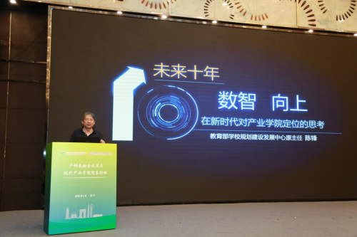 教育部规划建设中心原主任陈锋做了题为《数智向上:在新时代对产业学院定位的思考》主旨报告,强调现代产业学院建设要面向未来十年的挑战加以设计。