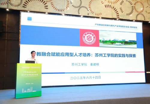 苏州工学院党委副书记、校长姜建明以苏州工学院现代产业学院建设实践为核心阐述了产教融合赋能应用型人才培养的理论与思考。
