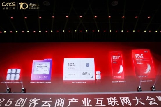 论坛过后进入到大会特设新品发布环节,成为诠释“创新为阶·智启新程”的生动注脚。创客云商一举揭幕了战略新品:可丽金赋能珍萃油霜、可丽金重组胶原蛋白赋能珍萃紧致驻颜面膜(升级版)、函得仕生机焕活防脱精华液。协同亮相的,还有作为稀有人参皂苷技术的产品创新,主打稀有人参皂苷成分的战略新品——益复生发酵人参浆也隆重揭幕,与上述新品集中亮相,共同彰显了创客云商以硬科技驱动产品创新的坚实能力。