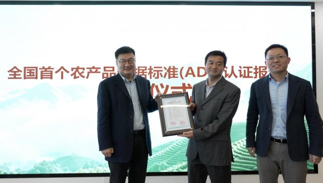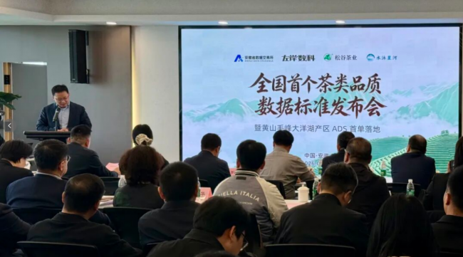 4月24日,"全国首个农产品数据标准(ADS)发布会暨黄山毛峰大洋湖产区ADS首单落地"活动在安徽省数据交易所举行。会上,由安徽省数据交易所(以下简称"省数交所")与安徽左岸数字科技有限公司(以下简称"左岸数科")联合推出的ADS农产品数据标准体系正式发布,黄山松谷茶业有限公司成为全国首家获颁ADS认证的茶叶生产企业,标志着数据要素赋能农业在茶叶品类实现首个全国性标准化落地。