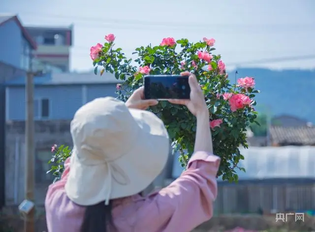 游客在清水河村拍照打卡(央广网发 晋宁区委宣传部供图)