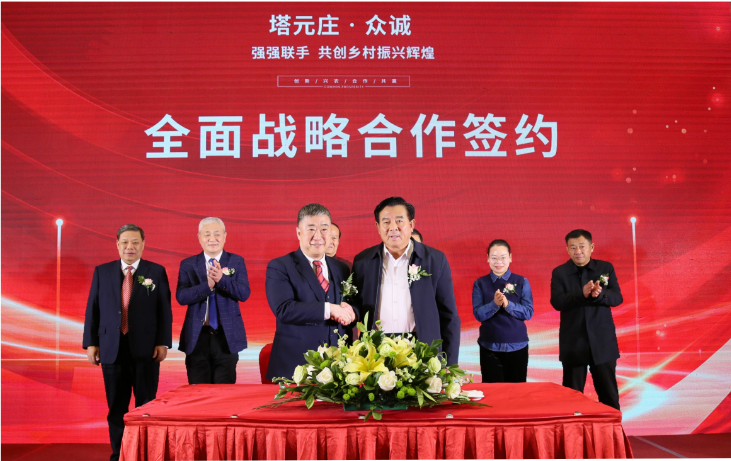 2023年12月18日,塔元庄集团与河北众诚集团签署了全面战略合作协议。塔元庄党委书记尹计平,众诚集团董事长韩杏军,以及双方单位各部门领导、农业专家、新闻媒体等共同见证了签约仪式。