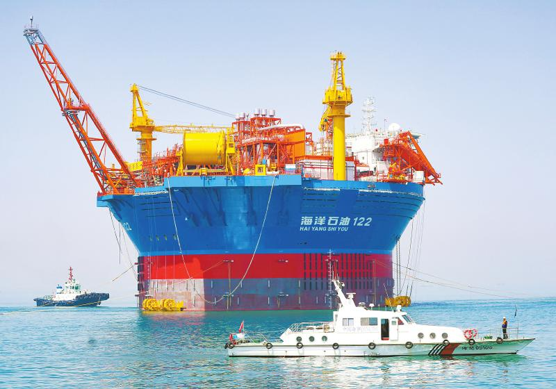 新华社北京6月10日电(记者戴小河、印朋)中国海油10日发布消息,随着最后一根锚链锁紧固定,亚洲首艘圆筒型浮式生产储卸油装置“海葵一号”完成海上安装,在珠江口盆地流花油田精准就位,标志着我国深水油气田浮体设施系泊系统安装能力获得新突破,为我国首个深水油田二次开发项目年内投产奠定基础。 “海葵一号”所在海域距深圳东南约240公里,水深320多米,风向多变、内波流频发。“海葵一号”是集原油生产、存储、外输等功能于一体的高端海洋装备,由近60万个零部件组成,总重达3.7万吨,高度接近30层楼,主甲板面积相当于13个标准篮球场,最大储油量达6万吨,每天能处理约5600吨原油。 中国海油深圳分公司流花油田开发项目副总经理王火平说,“海葵一号”是国内首次对圆筒型海洋装备进行海上回接,由于圆筒型结构重心高、受风面大,容易发生旋转,海上安装难度极大。“海葵一号”采用新型的圆筒结构设计,设计寿命30年,可连续在海上运行15年不回坞。相较于常规的船型,圆筒型结构具有用钢量少、储油效率高、抵御恶劣海况能力强等优点,可有效提高经济适用性,降低油田开发与运营成本。 为确保“海葵一号”在波涛汹涌的大海安稳扎根,项目提前在海底安装了12套由我国自主设计、建造的深水吸力锚,并通过12条由“锚链+中水浮筒+聚酯缆”构成的系泊锚腿进行连接,单根锚腿长2570米,破断载荷达2300吨,相当于1500辆家用小汽车的重量。这套系泊系统就像安装在海底的“拴马桩”,将“海葵一号”牢牢固定在海面上。 王火平说,在距“海葵一号”2.5公里处,亚洲第一深水导管架平台“海基二号”也在日前完成全部安装作业,刷新海上原油生产平台高度和重量两项亚洲纪录。“海基二号”总高度达428米,总重量超5万吨,共设生产井24口,搭载了原油工艺和外输系统、生产水处理系统及电力供应系统等300余套设备,可实现远程水下井口控制、智能油气开采、台风生产模式等功能。