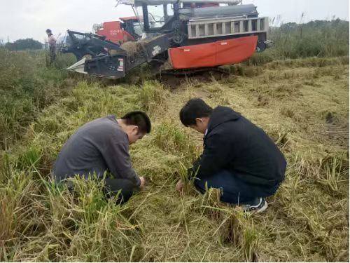 首先,调查人员分别在四股桥乡外山村、车头村随机选取机收地块开展了水稻机收减损监测调查,取样地块均是采用全喂入式机收方式进行收割作业。调查过程中,工作人员严格按照水稻机收损失监测调查测定方法,遵循程序、规范操作,确保数据的准确可靠性。
