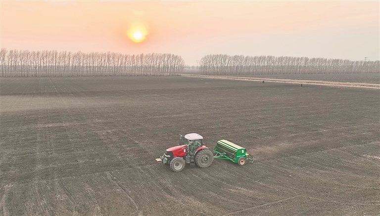 黑龙江日报讯(谭龙 记者刘畅)春耕正酣,北大荒农业股份八五二分公司第五管理区有机麦田里一派繁忙景象。大马力机车牵引着高精度播种机在田间穿梭,将优质麦种与有机肥料均匀地播撒进地里,一次性完成开沟、施肥、播种、覆土等作业,播深严格控制在3厘米~4厘米,行间误差不超过1厘米,播深一致、到头到边,全程精细化种植,为小麦丰产丰收夯基定调。 八五二分公司以“有机化+产业化”破题,通过品种升级、技术革新与产业链延伸,推动小麦种植向高附加值转型。分公司优选抗病害性强、适应性广的“龙麦35”与“克春120832”为核心品种,依托全程有机管理模式——播种前以生物菌剂拌种增强抗性,生长期施用有机生物肥提升地力,病虫害防控采用生物药剂精准喷施,杂草治理则引入智能除草机器人与人工协同作业,辅以粪肥还田、深施有机肥等举措,构建绿色闭环生产体系,确保小麦品质达到有机认证标准。 为最大化提升有机麦产业效益,八五二分公司创新“种植+加工+营销”一体化路径。今年通过精简流通环节,将自产有机原粮直供深加工车间,推出有机全麦粉、高筋粉、特色褐麦粉等系列产品,并依托“线上电商+线下体验”双渠道营销,打响“八五二有机麦”品牌。同时,分公司聚焦“粮头食尾”战略,开发出有机小麦、有机杂豆、有机豆油等系列有机产品,进一步延伸产业链条,推动传统农业向高效生态农业跨越。