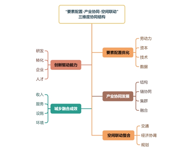 图2要素配置、产业协同、空间联动、三维度协同发展结构图