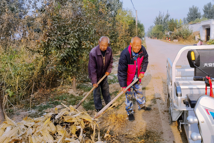 清理农村路边堆积垃圾。桃城区卫生健康局供图