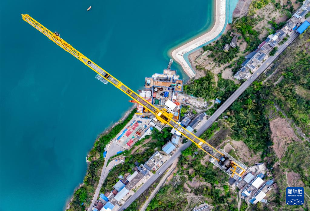4月11日拍摄的新市金沙江特大桥施工现场(无人机照片)。