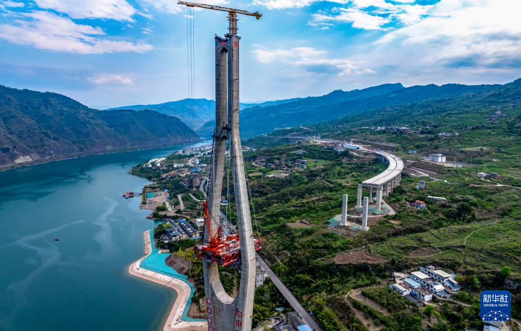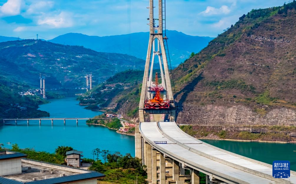 新市金沙江特大桥位于云南省绥江县南岸镇和四川省屏山县新市镇,是连接云南与四川两省的重要枢纽。大桥全长1867米,桥跨680米,最大墩高297.51米。