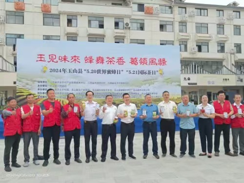5月20至21日,玉山县在将军庙广场隆重举行以“玉见味来 蜂舞茶香 葛领风骚”为主题的“5.20世界蜜蜂日”“5.21国际茶日”系列活动。江西省农业农村产业发展中心产业与农垦处处长陈绪红,江西省经济作物研究所党委书记叶川,江西省养蜂研究所党委副书记张串联出席活动,玉山县委副书记李晨明宣布活动开幕,玉山县人大常委会副主任杨时胜,玉山县副县长吴承材,玉山县农业农村局党组书记、局长叶建平等领导参加活动。...