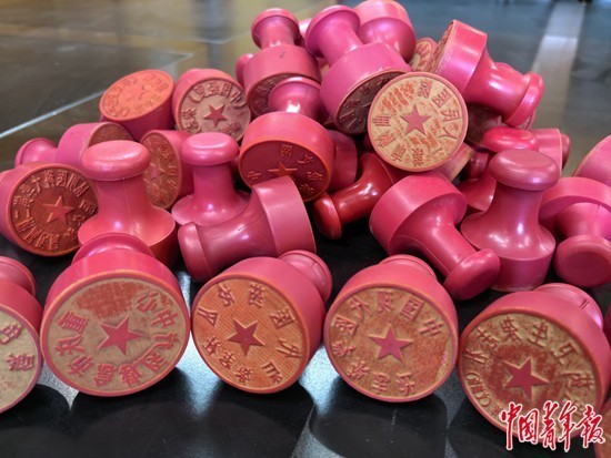 今年5月21日,在湖北省荆门市公安局高新区·掇刀区分局,中青报·中青网记者见到了一大盒子期刊社和多省市新闻出版部门的假公章,大约有100个。这些假公章都是从刊文公司缴获的,用来给《录用通知书》盖章。中青报·中青网记者 雷宇/摄