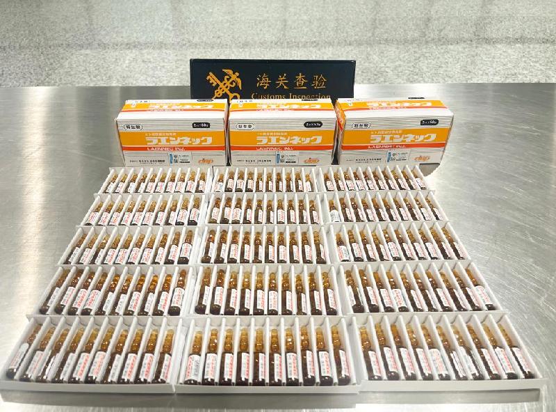 图为浙江杭州萧山机场海关在对一入境航班进行监管时查获的150支人体胎盘素注射剂。新华社发(杭州海关供图)