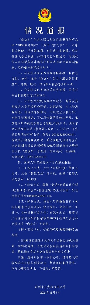 深圳福田警方:“鼎益丰”及其关联公司从事非法活动已涉嫌犯罪,相关人员被采取刑事强制措施