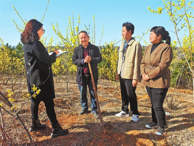 卢氏县纪检监察工作人员到文峪乡望家山连翘基地,了解村组集体“三资”管理工作。张海军 摄