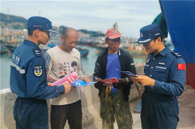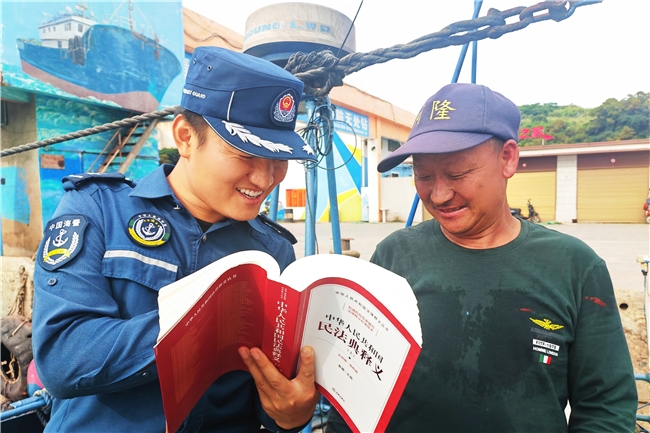 2025年5月28日,是《中华人民共和国民法典》颁布五周年纪念日,今年5月也是我国第五个民法典宣传月。为了深入学习并加强法治思想,深化广大群众对《民法典》的理解,5月27日下午,福州海警局在连江县黄岐中心渔港、罗源县鉴江古郁码头开展以“美好生活 民法典相伴”为主题的法治宣传活动。