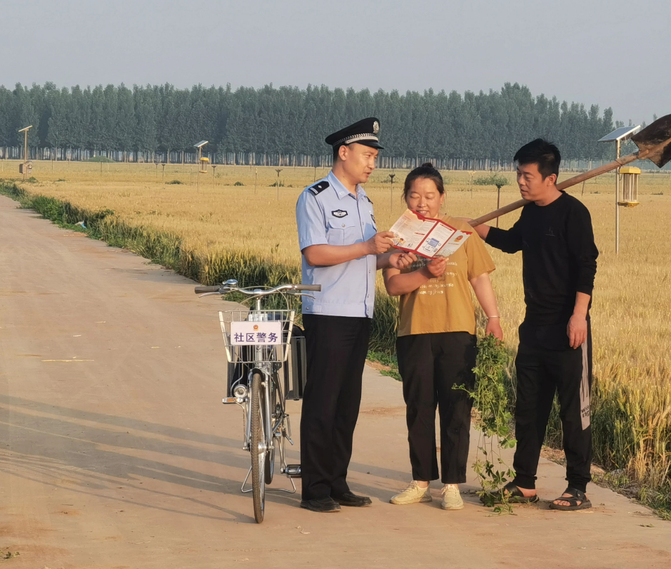自行车座后的背包里,存放着户籍、车驾管等高频业务办事指南,以及禁毒、反诈、防火各类宣传册,精准引导和教育群众养成学法、知法、懂法的良好氛围,不断提高群众的法治思维和防范能力。
