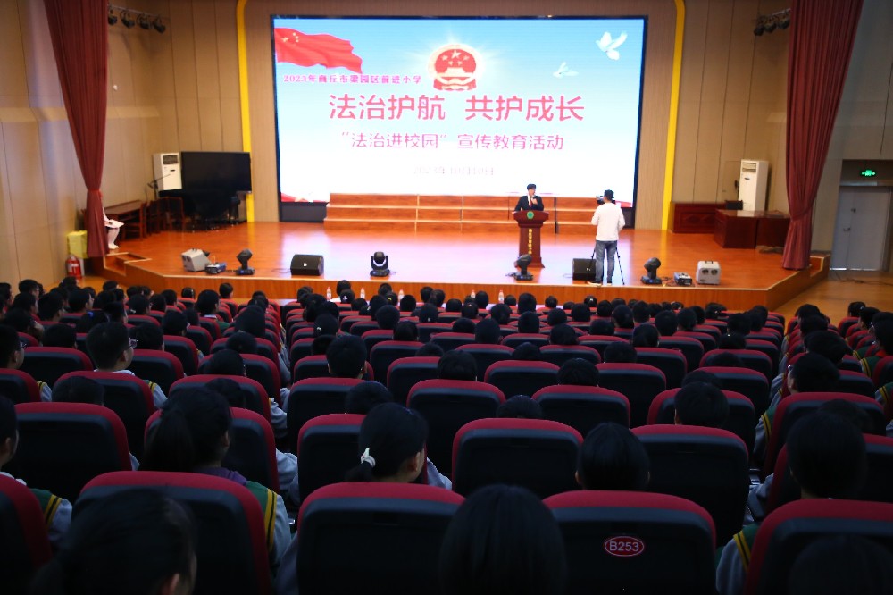 为进一步提高青少年法律意识和自我保护能力,增强学生的法治观念,10月10日下午,商丘市梁园区人民法院党组成员、副院长、前进小学法治副校长叶青,审判监督庭副庭长李冰,再次走进辖区前进小学,开展“法治护航 共护成长”法治宣传活动,用法治守护学生平安成长。...