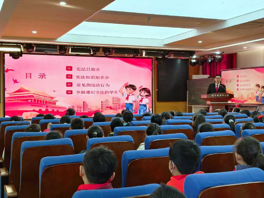 为进一步弘扬宪法精神,筑牢校园法治根基,12月4日上午,河南省郑州市中原区人民法院王慧生法官以法治副校长的身份走进中原区伏牛路第四小学,以“普法共护成长,共建法治校园”为主题开展讲座,为该校100余名师生送上了一份“法治成长指南”。...