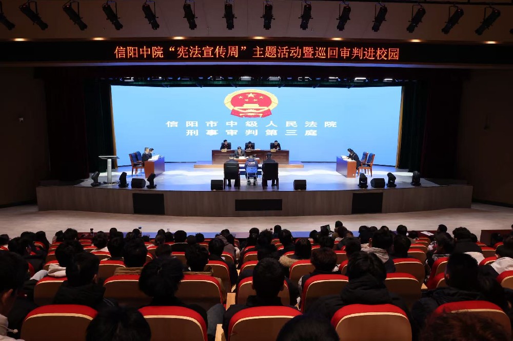 庄严的国徽,肃穆的审判席,熟悉的教室正在开庭审理一起刑事案件。11月18日上午,信阳中院刑三庭将一起涉嫌掩饰、隐瞒犯罪所得罪的案件庭审直接“搬”进了信阳航空职业学院的学术报告厅。信阳航空职业学院、信阳航空技师学院、信阳第六职业高级中学等五百名师生现场旁听了这场零距离的“法治公开课”,并与法官展开了热烈而深入的互动问答。...