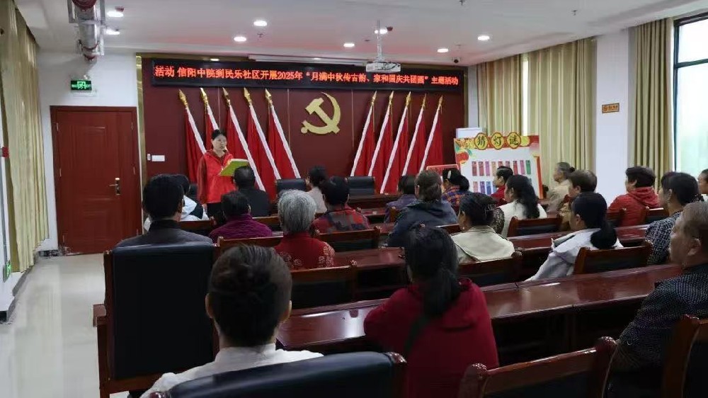 为深入贯彻落实党建引领基层高效能治理要求,进一步落实 “支部联支部”活动进社区,以党建力量激活社区服务效能,在中秋、国庆 “双节” 来临之际,9月26日,信阳中院党员志愿者,前往民乐社区开展 “月满中秋传古韵 家和国庆共团圆” 主题活动,将党的关怀与节日温暖送到群众身边。...