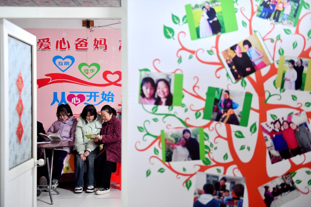 陈玉文和孩子在滏阳营村“爱心小屋”。新华社记者 王晓 摄