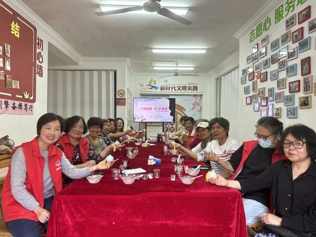 三花三居开展了“十指留香‘手’护美丽”活动,巾帼志愿者和居民们在社工的带领下,以破冰游戏手指操为契机,快速地熟悉并投入活动中。老师用通俗易懂的语言深入浅出地介绍了护手霜的成分和原材料以及详细制作过程,着重讲解了“乳化剂”的神奇作用。