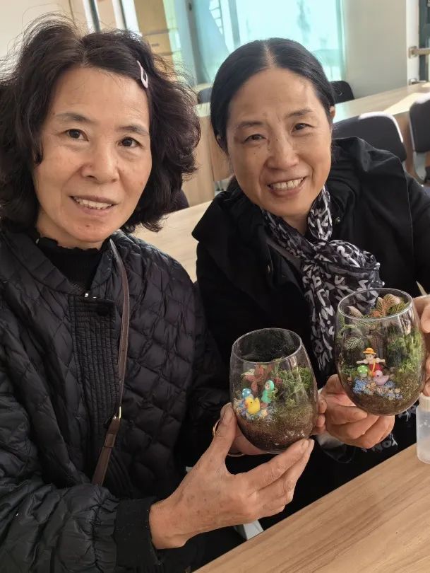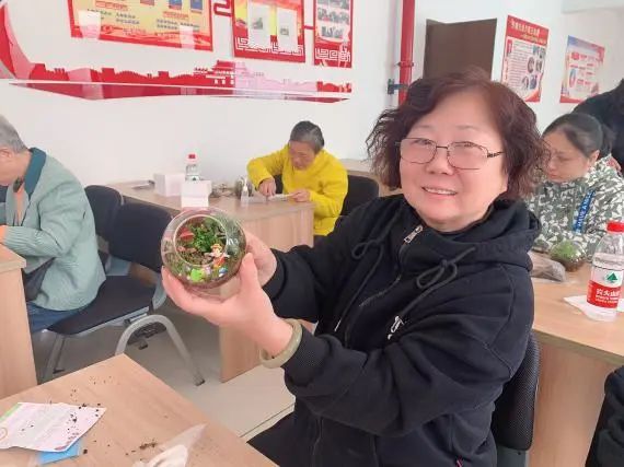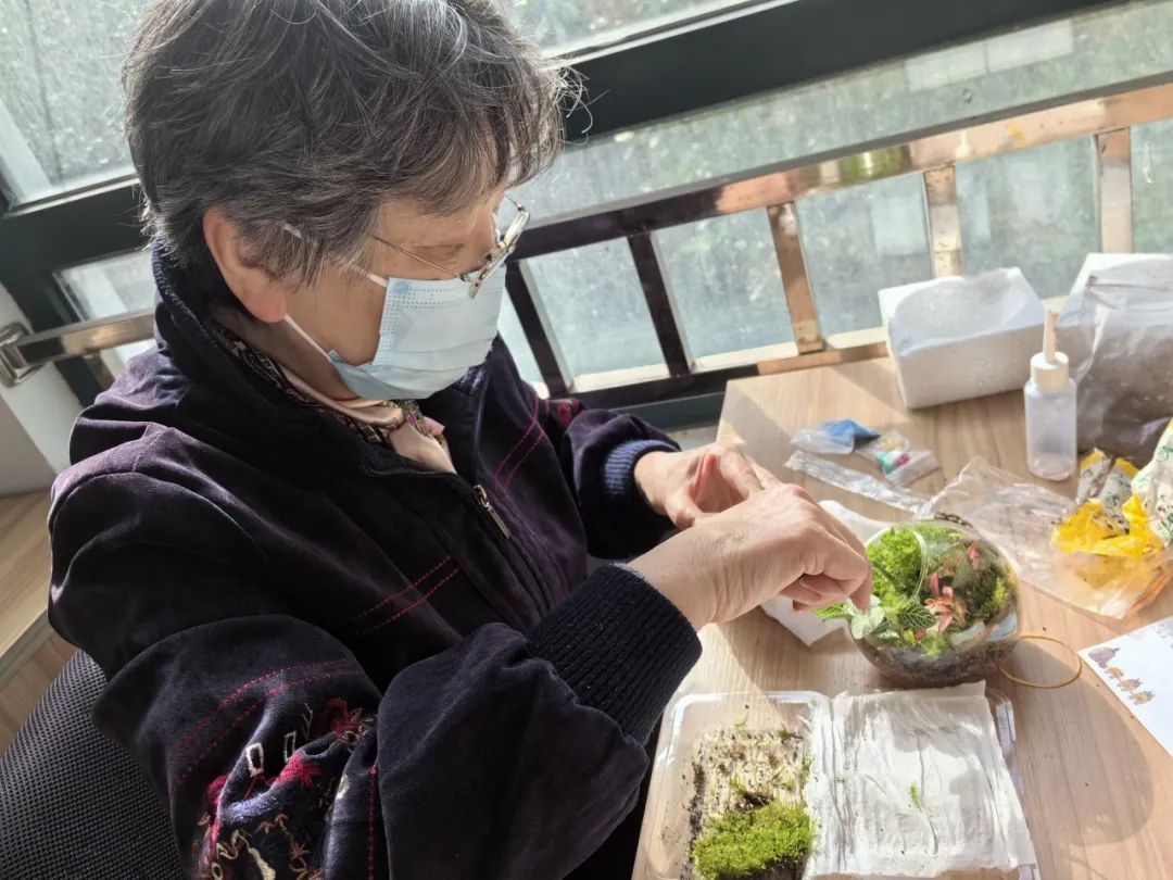 不一会儿,一个个妙趣精致、生态环保的“小森林”就打造完毕。李阿姨骄傲地说:“我要拍给我女儿看看,我们的生活也是很精彩的。”