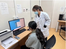 在电脑测试区域,面对部分患儿对电子设备的陌生与胆怯,团队成员用轻柔话语引导,缓解患者紧张情绪,协助他们顺利完成认知反应、社交倾向等模块的心理测试。