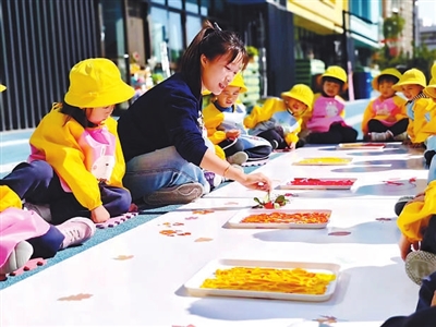 ①无锡市铃兰实验幼儿园教师在教孩子做手工。王辰予 摄