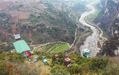2022年,“山高谷深坡陡”的上学路迎来转机。高达268米的电梯和近200米高差的高空索道缆车陆续投入使用,并对尼珠河村及附近的村民免费开放,孩子们上学有了直达山顶的“云端校车”。南方电网云南曲靖供电局还为电梯提供了双电源供电,确保“云端校车”全年正常运行。