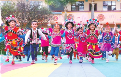 ①牟定县江坡镇的孩子们在新建成的中心幼儿园。