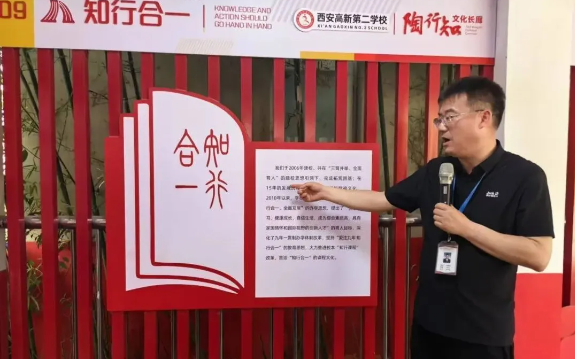 会前,各位理事首先参观了西安高新第二学校的陶行知文化长廊,重温陶行知先生生平事迹,再读“生活即教育、社会即学校、教学做合一”三大教育主张及“实、活、真、创、爱、新、行、人”八字精髓,接受陶先生的教育理念熏陶,在行走中感受学陶师陶践陶的浓厚氛围。