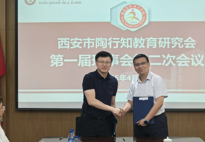 2025年4月30日,由西安市陶行知教育研究会主办,轮值执行会长单位、高新第二学校承办的西安市陶行知教育研究会第一届第二次理事会在高新第二学校成功召开。轮值执行会长高杨杰校长主持,西陶会理事单位及秘书处工作人员齐聚一堂。