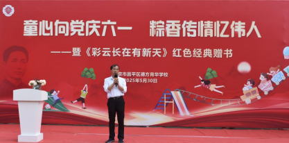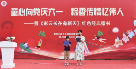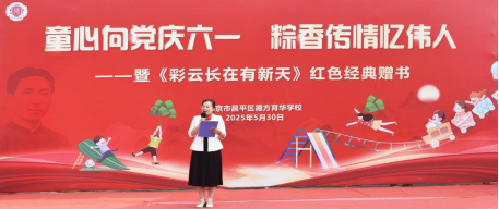 5月30日,北京市昌平区德方育华学校主办“童心向党庆六一 粽香传情忆伟人” ——暨《彩云长在有新天》红色经典赠书活动”,嘉宾与师生齐聚一堂,融德育教育,培养读书兴趣及节日庆贺于一体,给孩子带来一个别开生面的节日,伴孩子们快乐成长。