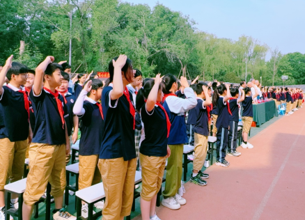 学校大队长秦苏渝同学代表学生发言。